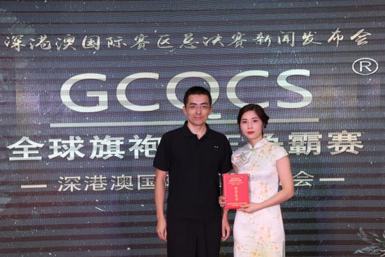 第二届《全球旗袍女王争霸赛》全球副、第一届《全球旗袍女王争霸赛》中国赛区总决赛(组)冠军、珠海市珏远文化有限公司董事长刘怀玉女士为杨昕岳女士颁发“深港澳国际赛区总顾问”荣誉证书。