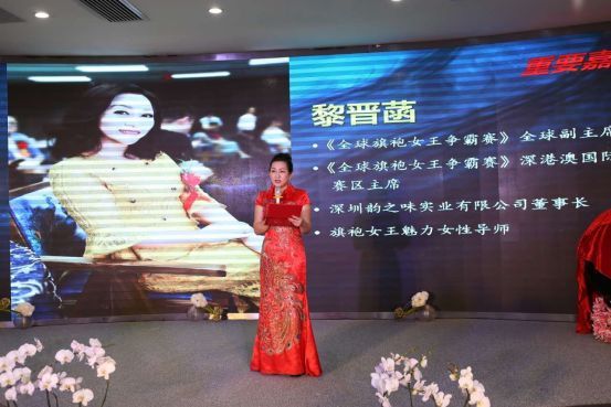 第二届《全球旗袍女王争霸赛》全球副兼深港澳国际赛区、旗袍女王魅力训练导师、深圳韵之味实业有限公司董事长黎晋菡女士发言致词。