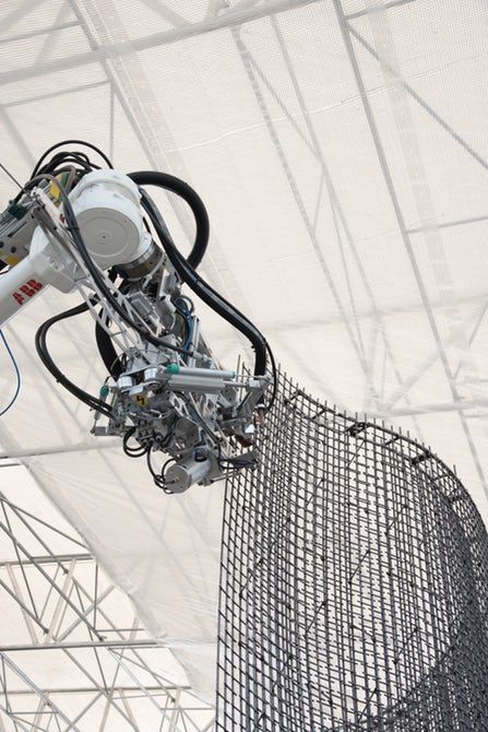 DFAB House项目已经动工,组件正在现场制造。DFAB House预计明年夏天完工,将有一个200平方米的房屋面积,商住两用。研究人员正使用2米高的机器人制造金属框架并浇筑混凝土。机器人使用刀架弯曲并焊接6 mm钢筋以构成网眼框架。