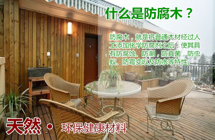 防腐木知识:木材是人类最早使用的天然材料,也是当今世界四大材料(刚才,水泥,木材 和塑料)中唯一可再生,可自然降解的生物资源,其容积重小,强度高,防震抗震,生热传导性低电绝缘性好,耐冲击,耐久性强,具弹性和任性、材色和纹理美丽,健康环保,易加工的特性,使之成为最理想的室内外建筑材料和装饰材料;此外由于木材的可再生型,木材也是一种环保型建材。
